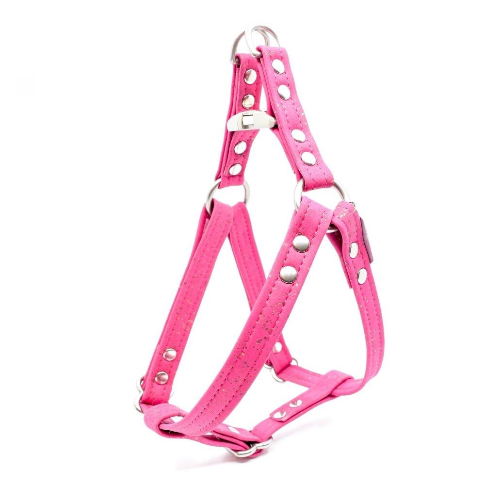 Our Fuchsia Cork Dog Harness is where eco-luxe style, comfort and support all come together. The simple design provides a more supportive option for dogs who walk with purpose.  Handcrafted in our Connecticut studio with bright pink, cork leather, a soft, leather alternative with unique, subtle variations in color and texture.